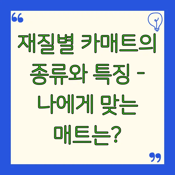 재질별 카매트의 종류와 특징 - 나에게 맞는 매트는?